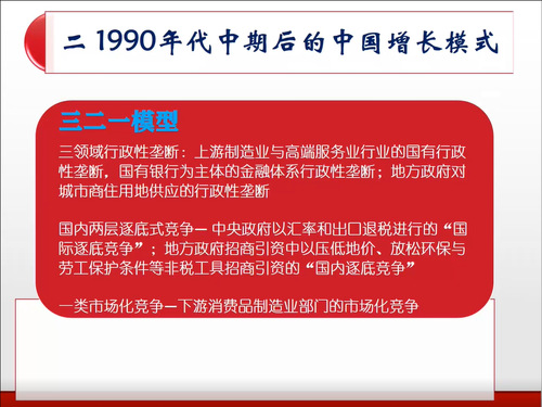 陶然教授首先探讨了转型发展阶段的中国模式,接着介绍了1990年代中期后的中国增长模式,重点介绍了一个中国式经济增长与工业化、城市化发展模式的结构性分析框架:“三二一模型”,三是指三领域行政性垄断,二是指国内两层逐底式竞争,一是指市场化竞争。他用该模型解释了为什么地方政府在不同类型土地上采取策略性的差别出让,解释了中国现有的增长模式为什么会出现如此严重的路径依赖,也解释了为什么当本世纪初中国经济增长已逐步走出低谷后的将近二十年期间,征地制度改革却一直并没有取得实质性进展等问题。