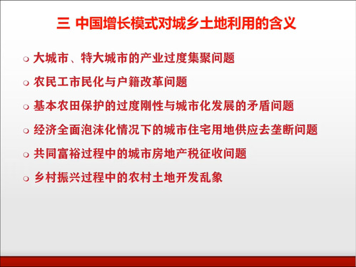 随后,他围绕大城市、特大城市的产业过度集聚问题、农民工市民化与户籍改革问题、基本农田保护的过度刚性与城市化发展的矛盾问题、经济全面泡沫化情况下的城市住宅用地供应去垄断问题、共同富裕过程中的城市房地产税征收问题、乡村振兴过程中的农村土地开发乱象问题等六大问题深入探讨中国增长模式对城乡土地利用的含义。
